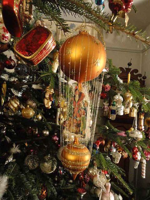 Cornelia's tree is 2,70 m tall and approximately 4 m wide. If I converted that correctly, it's almost 9 feet tall and around 13 feet around. Let's take a closer look at some of the amazing ornaments Cornelia has collected over the years.