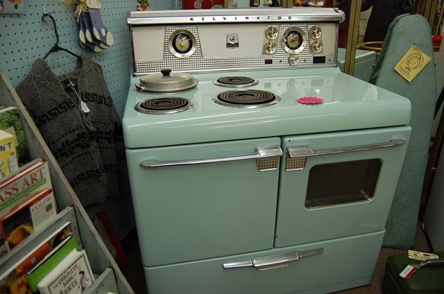 Apparently this one dates back to the 1940's...and how about that color? Aqua is all the rage now...it seems like everyone is decorating with this color these days. Okay, maybe not in appliances, but it is still kind of cool.
