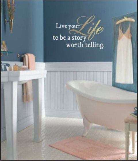 Once you've removed the wax paper backing, you center the lettering where you want it on your wall and press down firmly. It's easy to center it because you can see through the paper on which the letters/art are attached. It stuck easily to the wall and didn't try to lift as I removed the backing. Again, the important thing is to go slowly and not rush the process. I couldn't really take pics and apply the decal at the same time, but the instruction sheet that comes with the art has lots of pictures detailing each step.