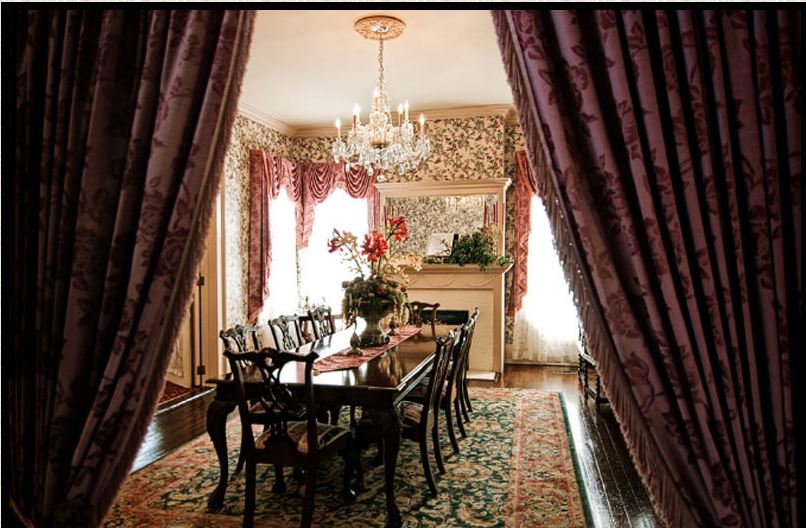 Today the home is a Bed and Breakfast owned by Nancy and Sandy Edwards who graciously open it to the public for tours. Come along and take a peek inside this beautiful old home. (The following pictures were taken by me the day of the home tour, except for the photo of the dining room and back yard, which I found online at the Whitlock Inn site.)